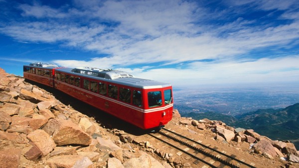 1891년 운행을 시작한 이후 수백만명의 사람들이 해발 14,110 피트의 산정상까지 파익스 피크 카그 철도를 이용했다. 애스핀 나무와 전나무 숲을 헤치고 힘차게 산을 올라가는 이 열차는 미국에서 가장 높게 올라가는 철도로 명성을 날리고 있다. 연중 운행하며, 기차 요금은 성인 $33, 어린이(3-12세)는 $18이다. 하루 운행 횟수는 여름은 8회, 오픈 시즌은 2회 이상이다.