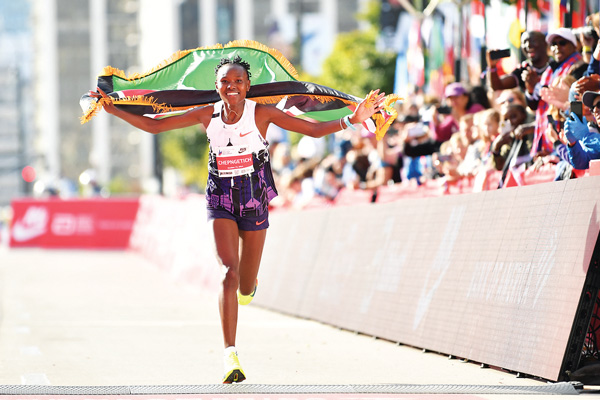 이는 지난해 9월 베를린 마라톤에서 티지스트 아세파(26·에티오피아)가 세운 종전 세계기록 2시간11분53초를 2분 가까이 앞당긴 것이다. 특히 체픈게티는 그동안 불가능하다고 여겨지던 여자 마라톤의 ‘2시간10분’ 벽을 처음으로 돌파했다. 2019년 세계육상선수권대회 여자 마라톤 챔피언인 체픈게티는 시카고마라톤에서 유독 강세를 보였다.