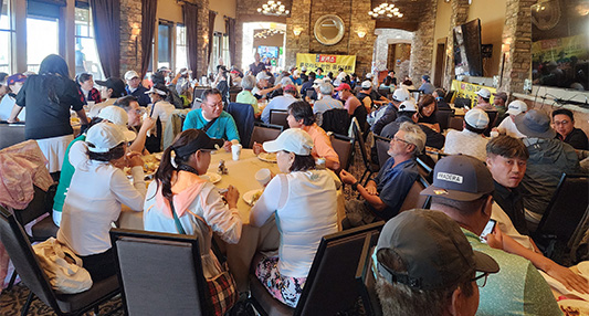 주간포커스가 주최하는 한인 청소년 문화재단 기금마련을 위한 제4회 콜로라도 한인 골프대회가 지난 8월12일 월요일 오후 12시 파커에 위치한 프라데라 컨트리 클럽(프라이빗)에서 샷건방식으로 열렸다. 올해도 120명 전원이 출전하면서 콜로라도 최대 골프대회의 명성을 이어나갔다. 그러나 대회 시작 2시간 정도 지나자 비가 조금씩 내리기 시작했고, 다량의 비가 내리면서 대회를 중단할 수 밖에 없는 상황에 이르렀다. 급작스러운 날씨 변화로 인해 각팀은 9번째홀 까지만 치고 대회를 마무리했다. 선수들은 대회를 더이상 진행할 수 없게 되자 시간보다 일찍 준비된 저녁식사를 마치고, 경기를 마치지 못한 아쉬움과 열정을 경품추첨 시간으로 대체했다. 이번 대회의 경품은 콜로라도 한인 골프대회 역사상 단연 최대 규모였다.