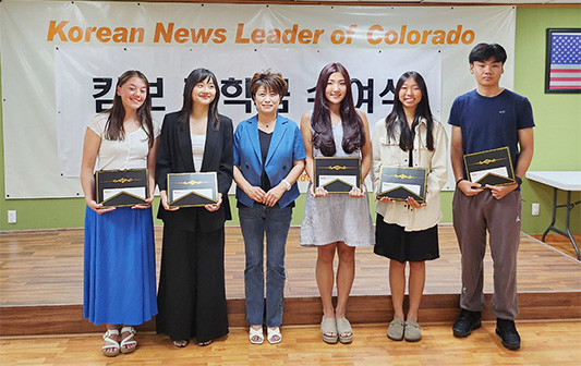 덴버 중앙일보사(대표 김현주)가 2024년 킴보장학금 수여식을 지난 8월 7일 수요일 오후 4시 주간포커스 문화센터에서 진행했다. 비영리 단체인 해피 빌리지와 미 전역의 중앙일보가 킴보 장학재단의 후원으로 실시하는 2024년 덴버지역 킴보장학생에는 5명이 최종 선발되었다. 장학금 금액은 기존의 2,000달러에서 500달러가 인상되어 2,500달러씩 전달되었다. 덴버 중앙일보 김현주 사장은 “전미 킴보장학생 선발은 올해로 37회를 맞았으며, 덴버지역 킴보장학생은 지난 2019년부터 시작해 올해로 6회째이다. 지금까지 총 30명이 킴보장학금을 받게 되었다. 앞으로도 꾸준하게 장학 사업을 통해 커뮤니티에 나눔을 실천하겠다. 콜로라도 한인사회를 항상 기억하고, 학교에서도, 사회에서도 늘 한국인의 긍지를 가지고 공부하고 봉사하길 바란다”고 장학생들을 축하했다.