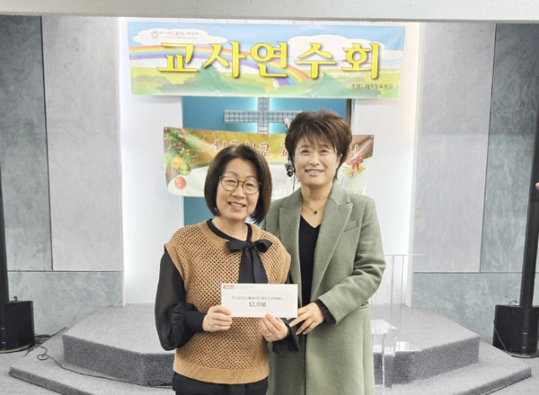 김현주 대표는 4년 연속으로 재미한국학교 콜로라도 지역협의회 유미순 회장에게 $2,000 후원금을 전달했다. 지난 11월 9일에 열린 2024 교사연수회에서 후원금을 전달한 김 대표는 “우리 한인 2세들을 위해 노력하고 있는 선생님들에게 늘 감사한다. 이 후원금이 학생들을 위해 유용하게 사용되길 바란다”라고 전했다.