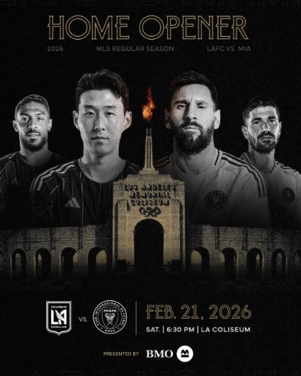 LAFC는 리그 쌍두마차가 맞붙는 다음 시즌 첫 경기 장소를 기존 홈 경기장인 BMO 스타디움이 아닌 LA 메모리얼 콜리세움에서 개최한다. 2028년 LA 올림픽 개회식이 열릴 콜리세움은 7만7000여석 규모로 2만2000석 정도인 BMO 스타디움보다 3배 이상 크다. LAFC 경기가 콜리세움에서 열리는 것은 내년 개막전이 처음이다.MLS는 리그 홈페이지에 '2026시즌 꼭 봐야 할 10경기' 중 이 개막전을 1순위로 꼽으면서 "지난 세기 가장 기억될만한 문화·스포츠 행사를 열어 온 콜리세움은 MLS 최고의 스타 메시-손흥민의 기대되는 대결을 위한 최적의 장소"라고 평가했다. 내년 MLS는 2월 막을 올린 뒤 11월 초까지 팀당 34경기씩 치르는 정규리그를 이어간다. 5월 말부터 7월 17일까지는 2026 북중미 월드컵을 위한 휴식기를 보낸다.